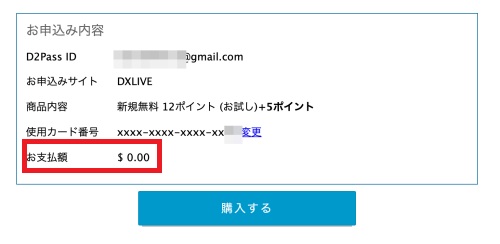次に進むと確認画面が表示される。支払金額が「$0.00」となっているので、そのまま「購入する」ボタンを押します。